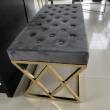 Oryginalna i eleganckie siedzisko wykonane z metalu w kolorze zlotym, siedzisko pokryte szarym welurem. Siedzisko zachwyci koneserów pięknych mebli w stylu glamour, nowojorskim, modern classic.