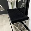 Oryginalna i eleganckie siedzisko wykonane z metalu w kolorze srebrnym, siedzisko pokryte czarnym welurem. Siedzisko zachwyci koneserów pięknych mebli w stylu glamour, nowojorskim, modern classic.