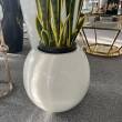 Dekoracyjna donica w kolorze białym wykonana z materiału fiberglass.