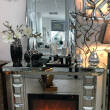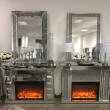 Ekskluzywny Kominek szklany w stylu glamour wykonany z lustra z elektrycznym wkładem posiada nadmuch ciepła .