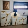Złote elementy to wycinany w szkle, lakierowany mdf