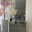 Połączenie lustrzanej ramy ze szkłem i kryształkami nada pomieszczeniu wyjątkowo eleganckiego charakteru.