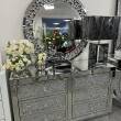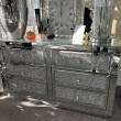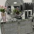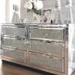 Piękna, nowoczesna komoda lustrzana z szufladami zdobiona kryształkami oraz uchwytami kryształowymi .