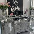 Niezwykle luksusowa komoda z szufladami i szafkami z półkami , w której umieścisz wszystkie swoje drobiazgi lub dokumenty. Połączenie lustrzanej ramy ze szkłem i kryształkami nada pomieszczeniu wyjątkowo eleganckiego charakteru.