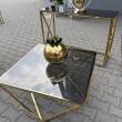 Konsola wykonana z polerowanej stali nierdzewnej w kolorze złotym.