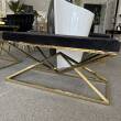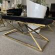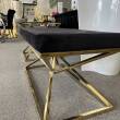 Oryginalna i eleganckie siedzisko wykonane z metalu w kolorze złotym, siedzisko pokryte czarnym welurem. Siedzisko zachwyci koneserów pięknych mebli w stylu glamour, nowojorskim, modern classic.