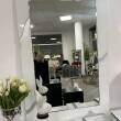 Srebrne elementy to wycinany w szkle, lakierowany mdf