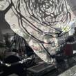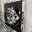 Obraz wykonany ze szklanych kamyczków na czarnym tle . Dodatkowa ozdoba jest ramą lustrzana .