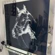Obraz wykonany ze szklanych kamyczków na czarnym tle .
