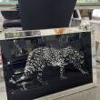 Obraz wykonany ze szklanych kamyczków na czarnym tle .