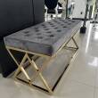 Oryginalna i eleganckie siedzisko wykonane z metalu w kolorze zlotym, siedzisko pokryte szarym welurem. Siedzisko zachwyci koneserów pięknych mebli w stylu glamour, nowojorskim, modern classic.