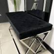 Oryginalna i eleganckie siedzisko wykonane z metalu w kolorze srebrnym, siedzisko pokryte czarnym welurem. Siedzisko zachwyci koneserów pięknych mebli w stylu glamour, nowojorskim, modern classic.