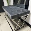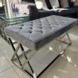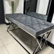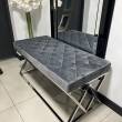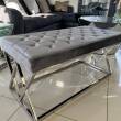 Oryginalna i eleganckie siedzisko wykonane z metalu w kolorze srebrnym, siedzisko pokryte szarym welurem. Siedzisko zachwyci koneserów pięknych mebli w stylu glamour, nowojorskim, modern classic.